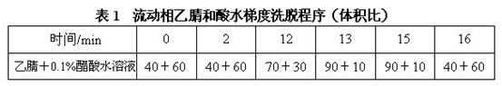 流动相:乙腈+0.1%醋酸水溶液,梯度洗脱,洗脱程序见表1。